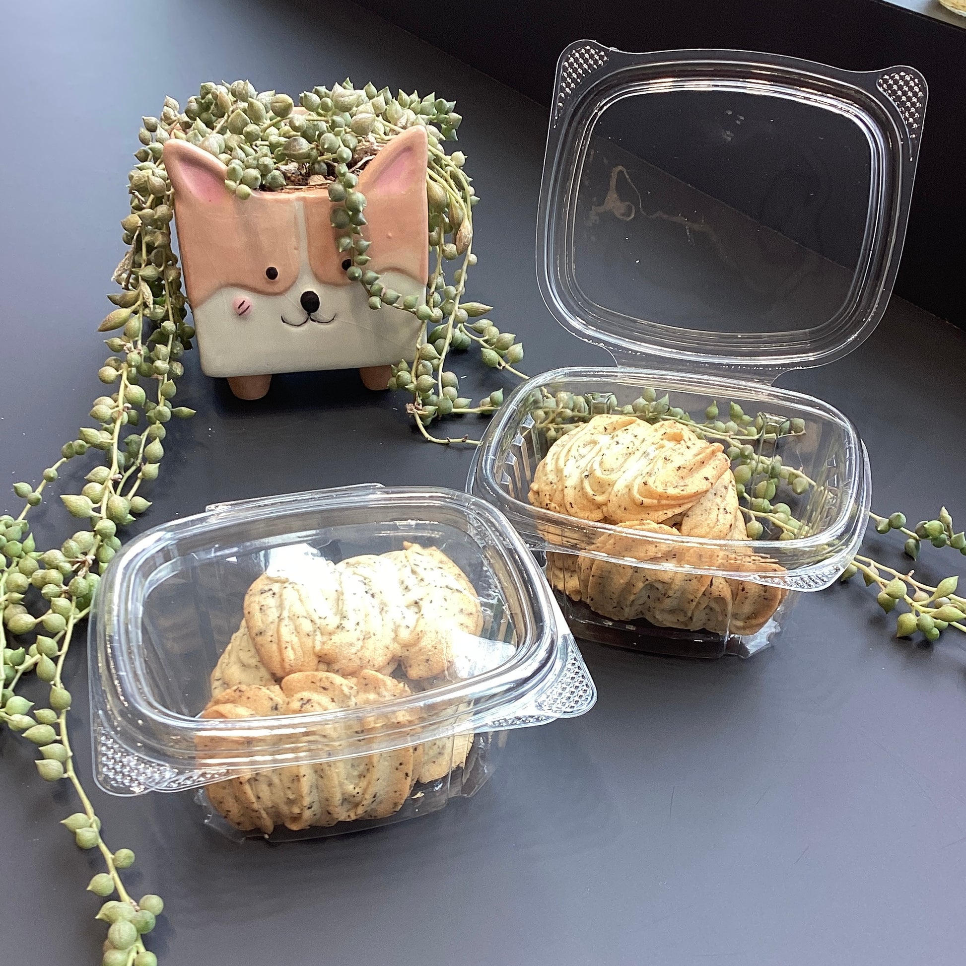 5 Earl Grey cookies in a small plastic container.
